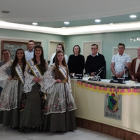 A menos de um mês do início da 22ª edição da Festa da Alegria, a Câmara de Vereadores de Alpestre recebeu uma visita da corte da Oktoberfest. Estiveram participando do início da sessão ordinária a rainha Talita e as princesas Ana Eduarda e Jéssica. Elas foram recebidas pelo presidente Luiz Vartha, demais vereadores e servidores.