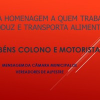 A Câmara Municipal de Vereadores de Alpestre, presta uma homenagem especial para todos os homens e mulheres que produzem e transportam as riquezas de nossa terra.